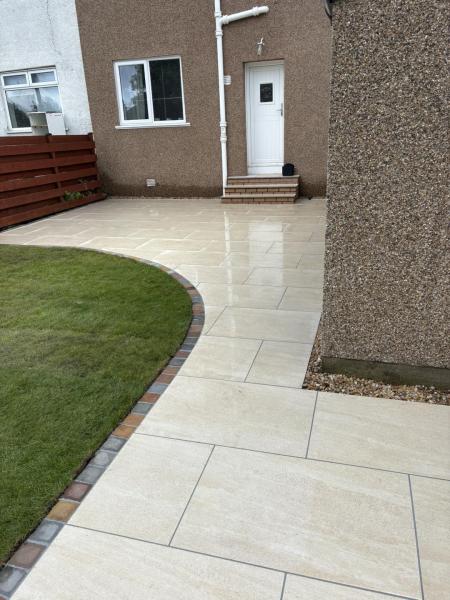 Expert Landscapers in Glasgow – Camel Porcelain Patio with Sandstone Set Border in Giffnock Looking for the best landscapers in Glasgow? This week, our expert team completed a stunning Camel porcelain patio installation in Giffnock, featuring a beautifully crafted sandstone set border. We specialise in creating bespoke garden landscaping solutions in Glasgow and the surrounding areas, combining style, durability, and low-maintenance materials for outdoor spaces that last. Porcelain Patios Glasgow – Durable, Stylish, Low-Maintenance Our porcelain patio installations in Glasgow are designed to enhance the beauty and functionality of your garden. Porcelain paving offers numerous benefits, including: High durability – perfect for the Scottish climate, resisting frost, rain, and wear. Low maintenance – easy to clean, stain-resistant, and resistant to moss and algae. Long-lasting colour and finish – keeps your garden looking fresh for years. Slip-resistant surfaces – safe for families and pets, even in wet weather. Adding a sandstone set border around the porcelain patio not only frames the area beautifully but also adds natural texture and contrast. This combination creates a timeless and elegant outdoor space, ideal for entertaining, relaxing, or enjoying your garden all year round. Landscaping Services in Giffnock and Glasgow As trusted landscapers in Glasgow, we provide a wide range of services tailored to your garden needs, including: Porcelain patio design and installation in Glasgow Natural stone paving and borders Bespoke garden landscaping solutions in Giffnock and Glasgow Hardscaping: patios, pathways, driveways, and retaining walls Garden maintenance and improvement services We take pride in delivering high-quality landscaping in Glasgow with attention to detail, exceptional craftsmanship, and personalised service on every project. Whether you want a small garden patio makeover or a complete garden transformation, we bring your vision to life. Serving Giffnock, Glasgow, and Surrounding Areas Our landscaping services cover Giffnock, Glasgow, and nearby areas, specialising in porcelain patios, sandstone borders, and bespoke garden designs. We understand the local climate, soil conditions, and design preferences, ensuring every garden we work on is both beautiful and built to last. Contact Glasgow’s Expert Landscapers Today If you’re searching for professional landscapers in Glasgow to install a porcelain patio or transform your outdoor space, contact us today for a free consultation and quote. Let our team help you create the perfect garden retreat with a stylish, durable patio that will last for years.
